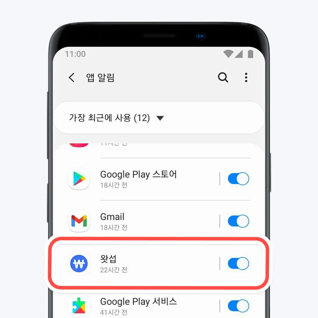 알림화면에서 왓섭 알림을 켜주세요! 그러면 설정이 완료되어요!